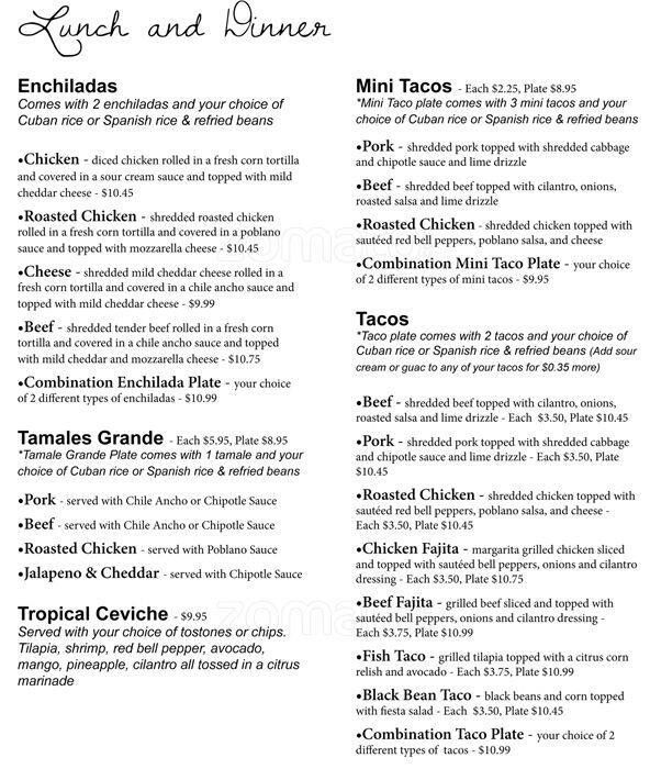 List of Tamale Kitchen Menu